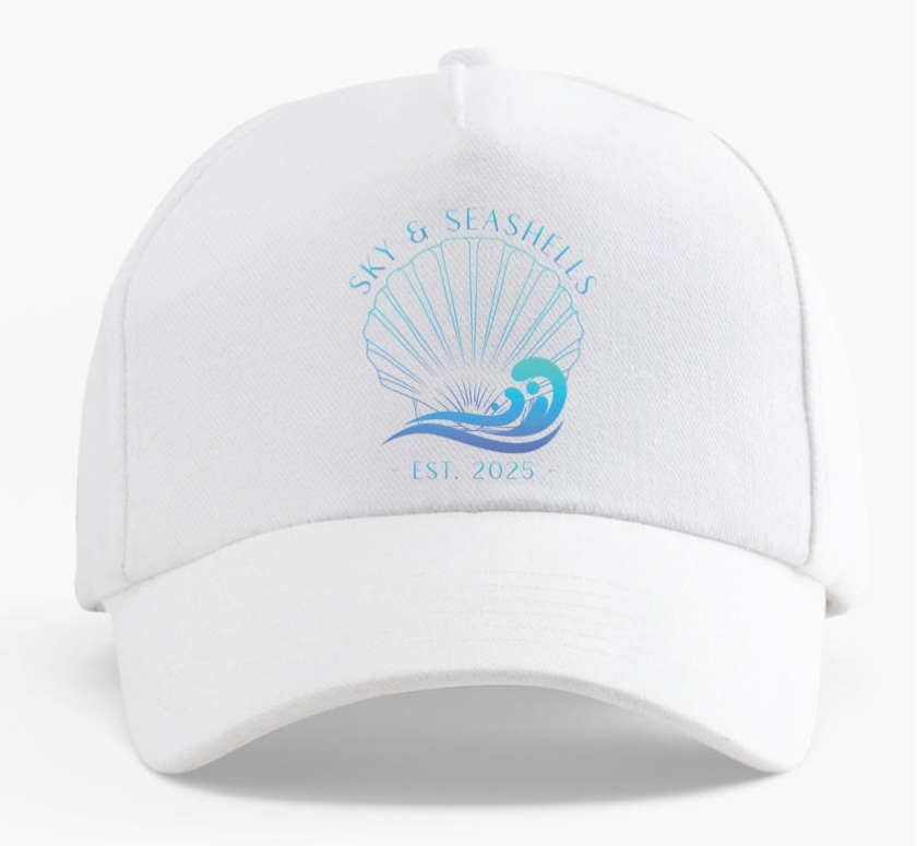 “Sky & Seashells” Adjustable Baseball Cap - White/Gradient